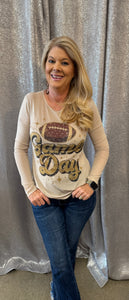 Game Day Rhinestone Long Sleeve Mesh Top-Taupe