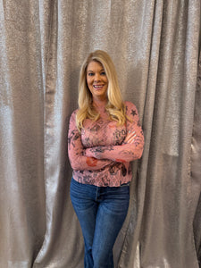 Cowgirl Mesh Long Sleeve Top-Taupe