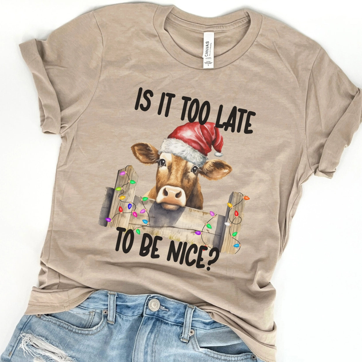 Moo-ve over, holiday fashion! This playful cow Christmas tee brings festive cheer with a humorous twist. Perfect for anyone who loves quirky seasonal style and doesn't take themselves too seriously. Whether you're asking that age-old question or just celebrating the season with a smile, this tee delivers laughs and comfort in equal measure. Cozy, casual, and undeniably fun—your new favorite holiday staple awaits.